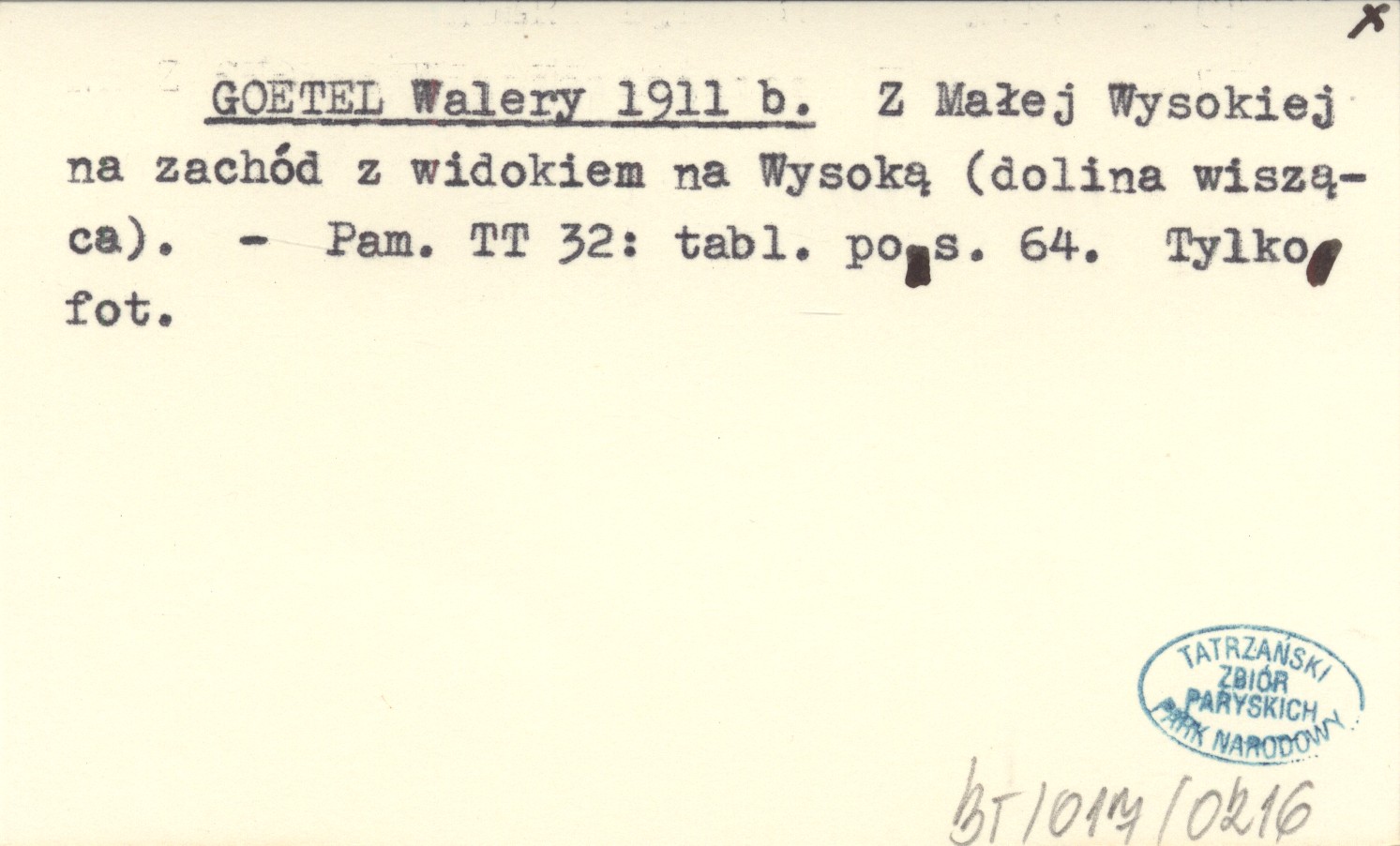 GOETEL Walery 1911 b Z Małej Wysokiej na zachód z widokiem na Wysoką (dolina wisząca).