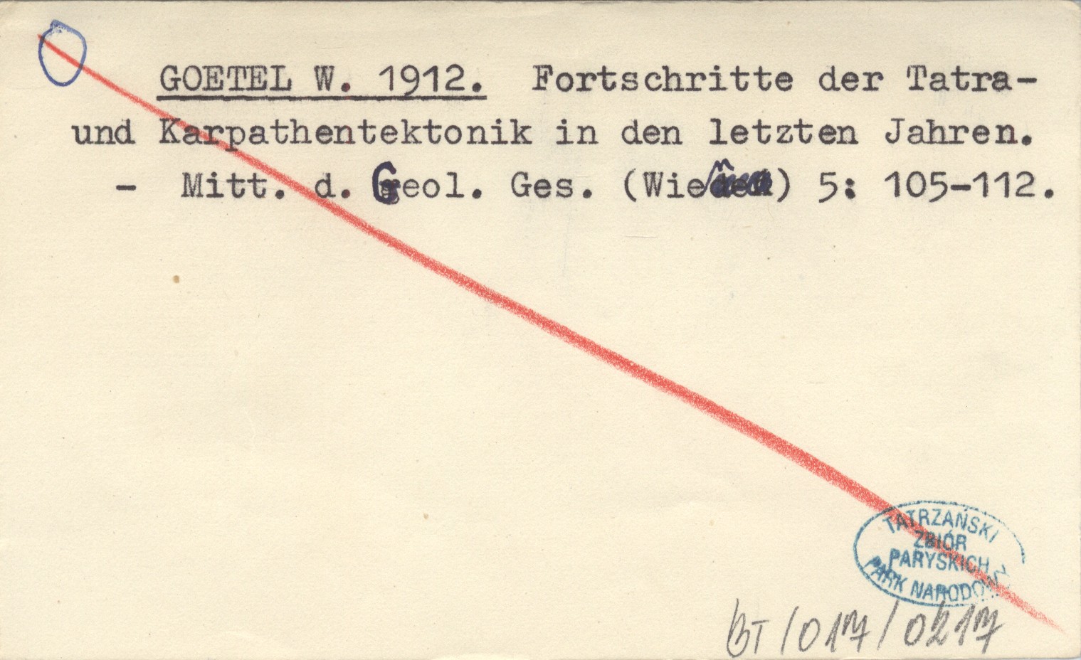 GOETEL W. 1912 Fortschritte der Tatra- und Karpathentektonik in den letzten Jahren.