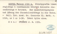 GOETEL Walery 1916 a Stratygrafia liasu reglowego i rozwiązanie kwestyi dolomitu choczańskiego w Tatrach. Zur Liasstratigraphie und Lösung der Chocsdolomitfrage in der Tatra.