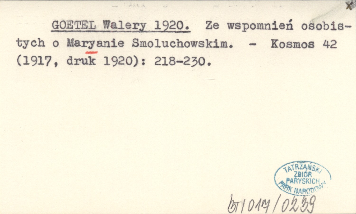 GOETEL Walery 1920 Ze wspomnień osobistych o Maryanie Smoluchowskim.
