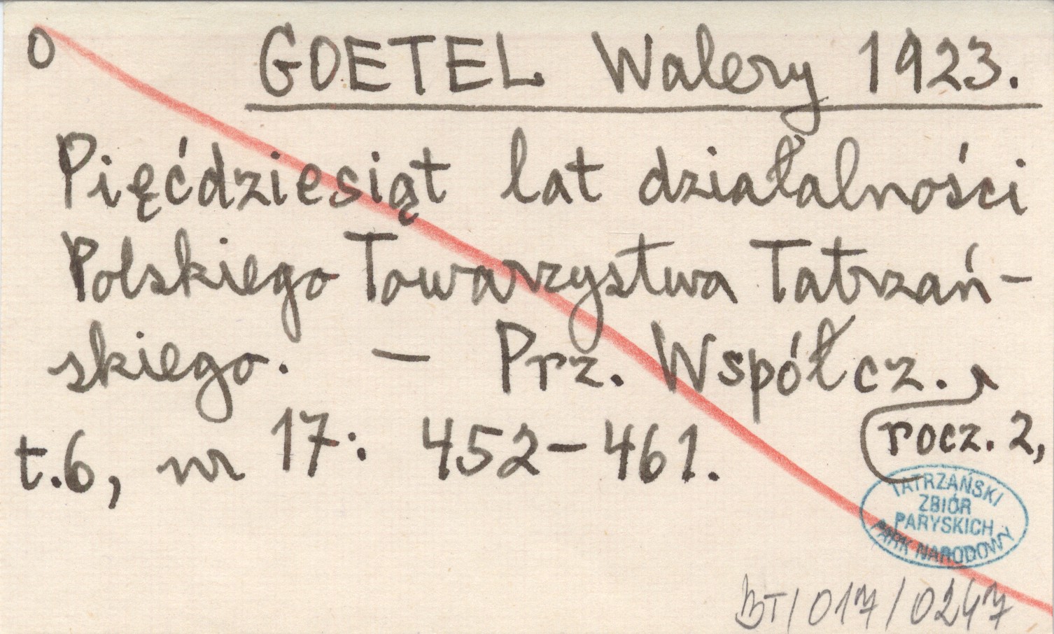 GOETEL Walery 1923 Pięćdziesiąt lat działalności Polskiego Towarzystwa Tatrzańskiego.