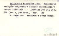 ARŁAMOWSKI Kazimierz 1962 Kancelarie zarządów miejskich w zaborze austriackim w latach 1772-1918.