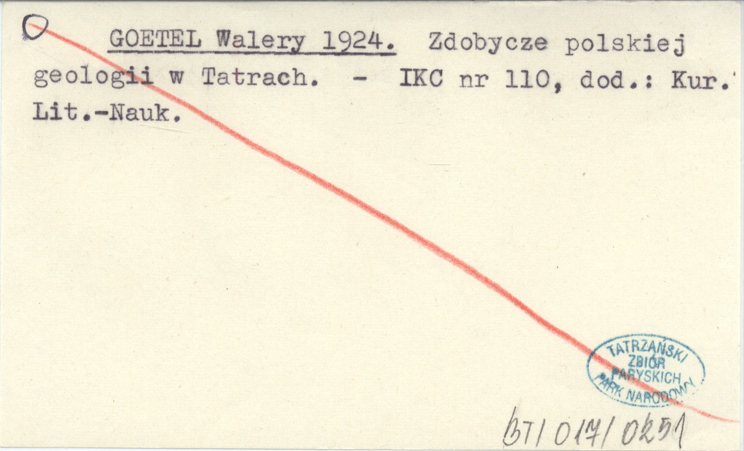 GOETEL Walery 1924 Zdobycze polskiej geologii w Tatrach.