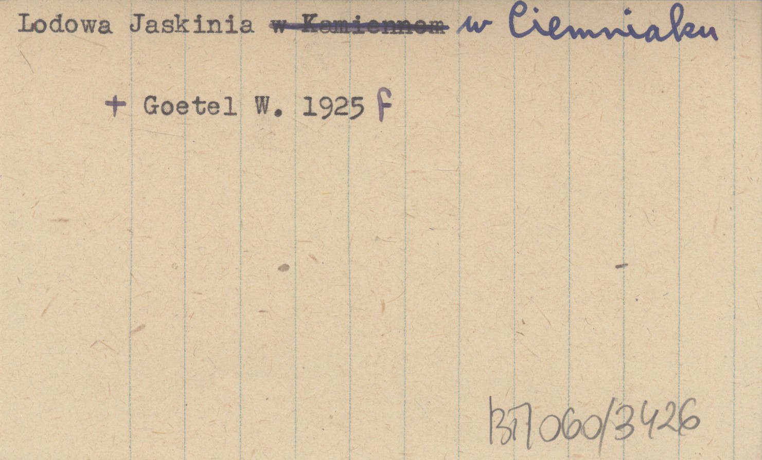 GOETEL Walery 1925 f Przyczynki do poznania grot lodowych w Tatrach. I. W sprawie powstania Groty Lodowej w Kamiennem.