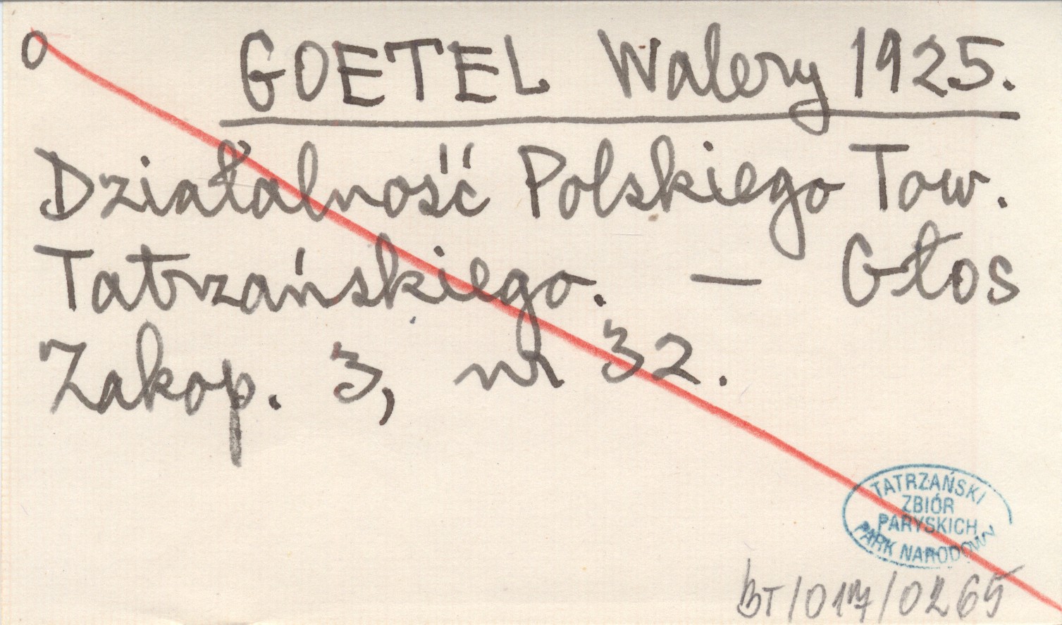 GOETEL Walery 1925 Działalność Polskiego Tow. Tatrzańskiego.