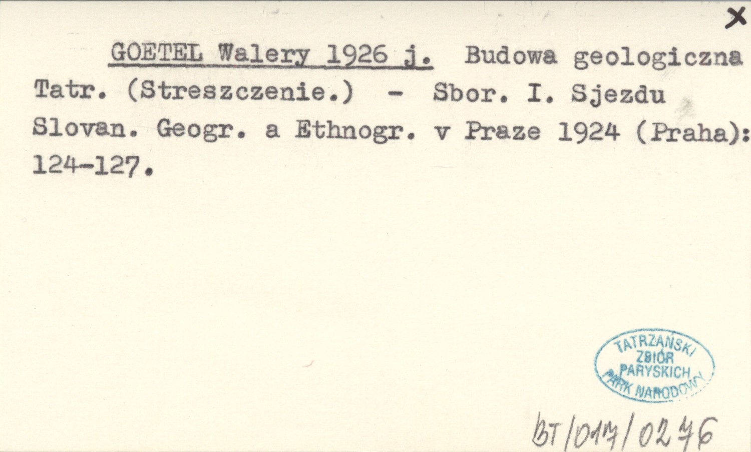 GOETEL Walery 1926 j Budowa geologiczna Tatr. (Streszczenie).