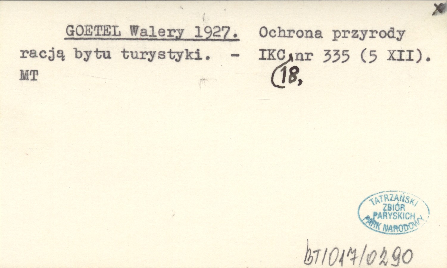 GOETEL Walery 1927 Ochrona przyrody racją bytu turystyki.