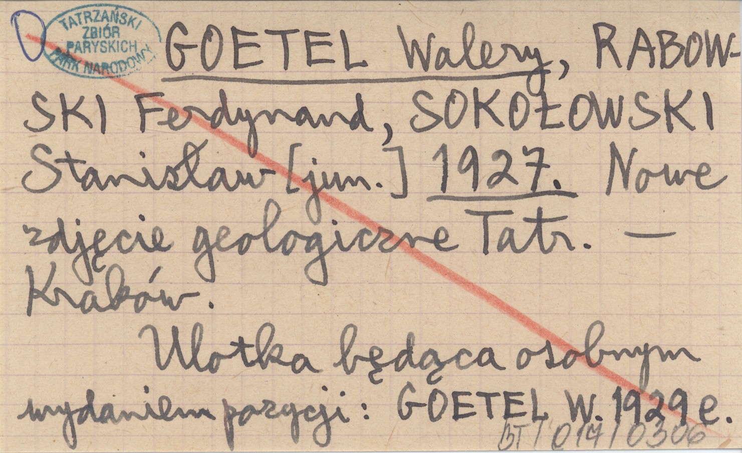 GOETEL Walery RABOWSKI, Ferdynand. ; SOKOŁOWSKI, Stanisław [jun.]. ; 1927 Nowe zdjęcie geologiczne Tatr.