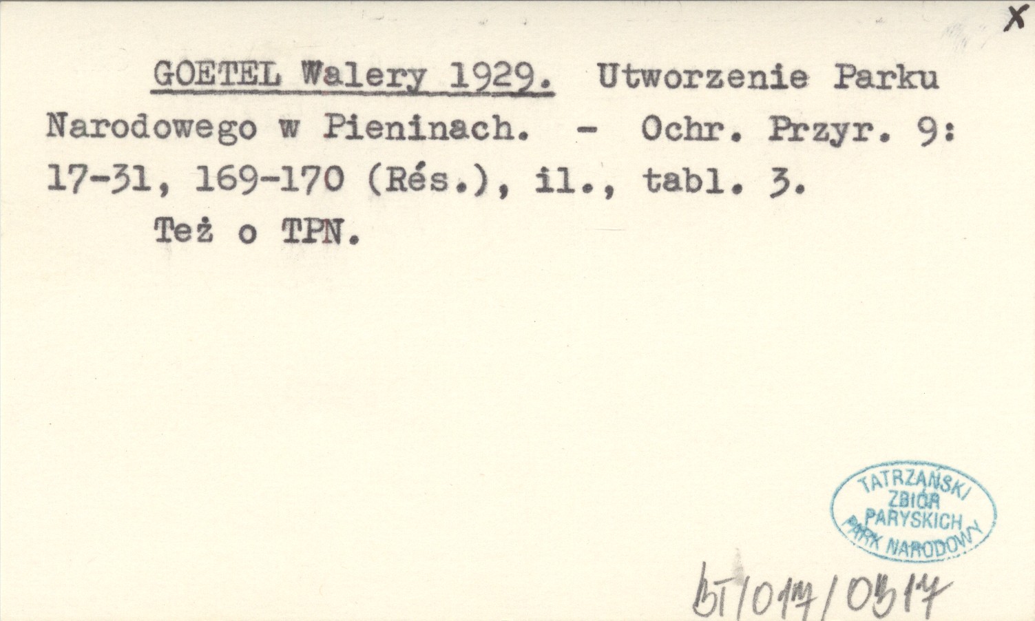 GOETEL Walery 1929 Utworzenie Parku Narodowego w Pieninach.