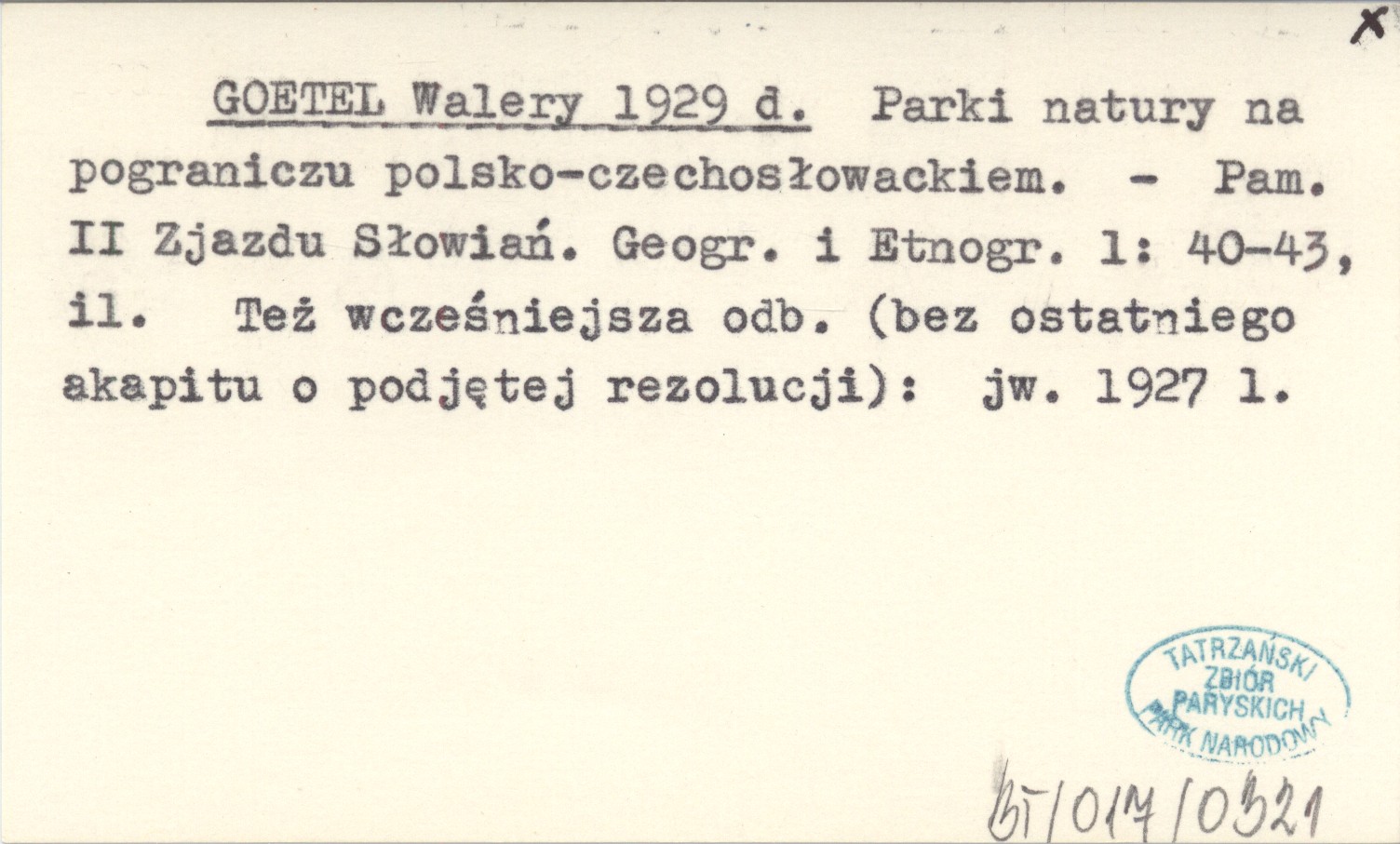 GOETEL Walery 1929 d Parki natury na pograniczu polsko-czechosłowackiem.