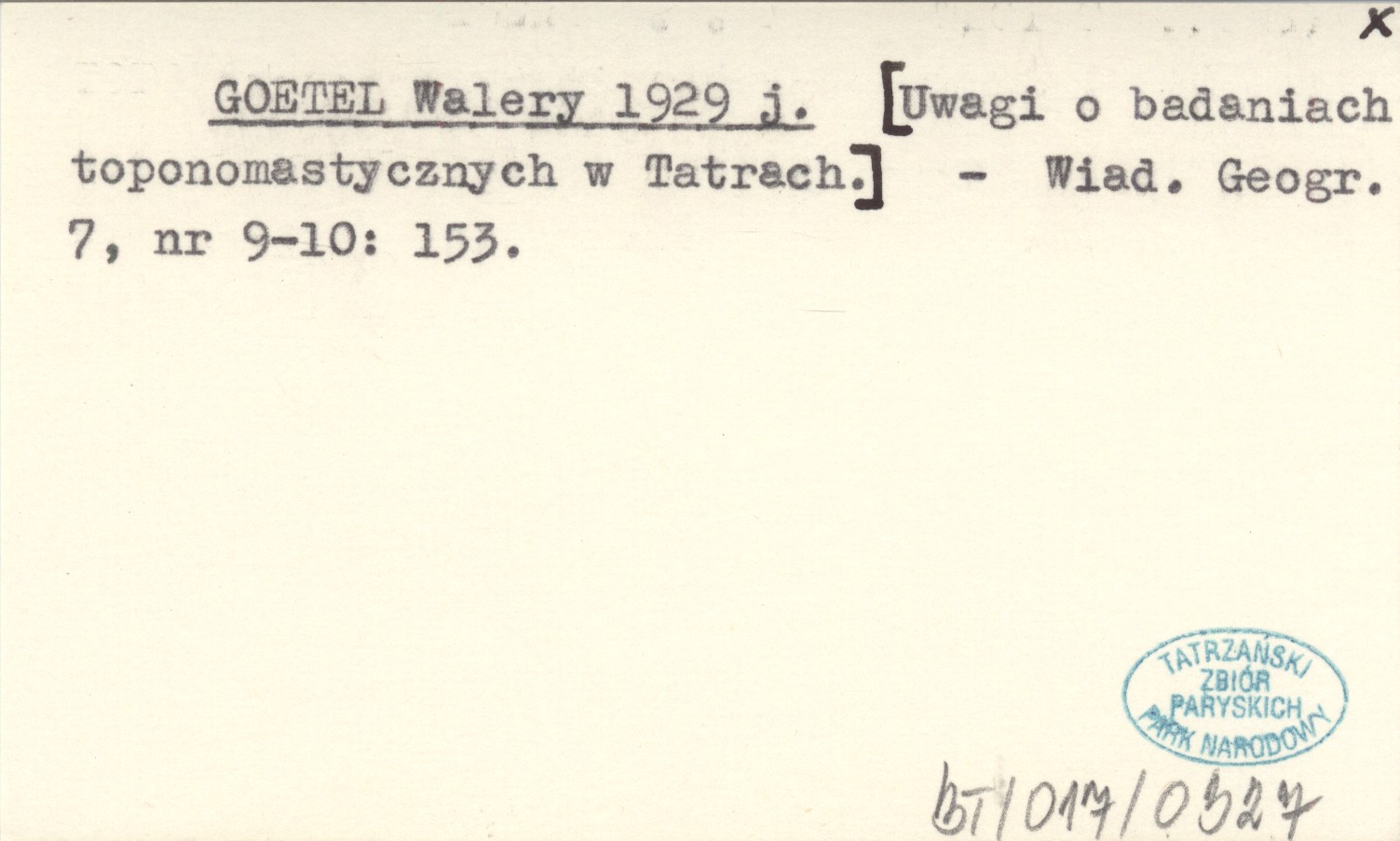 GOETEL Walery 1929 j [Uwagi o badaniach toponomastycznych w Tatrach.].