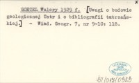 GOETEL Walery SOKOŁOWSKI, Stanisław jun. ; 1930 b Tektonika serji reglowej okolicy Zakopanego.