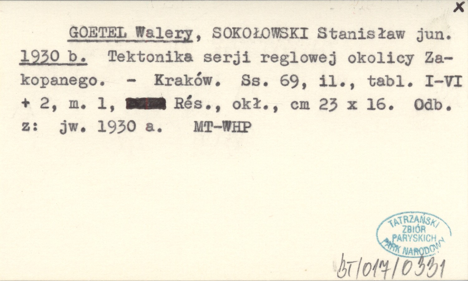 GOETEL Walery SOKOŁOWSKI, Stanisław jun. ; 1930 b Tektonika serji reglowej okolicy Zakopanego.