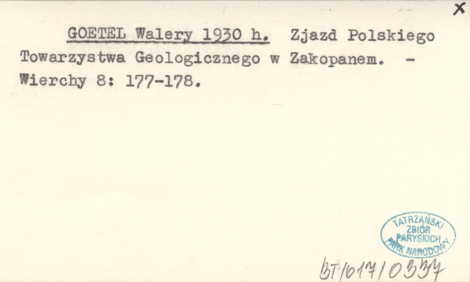 GOETEL Walery 1930 h Zjazd Polskiego Towarzystwa Geologicznego w Zakopanem.