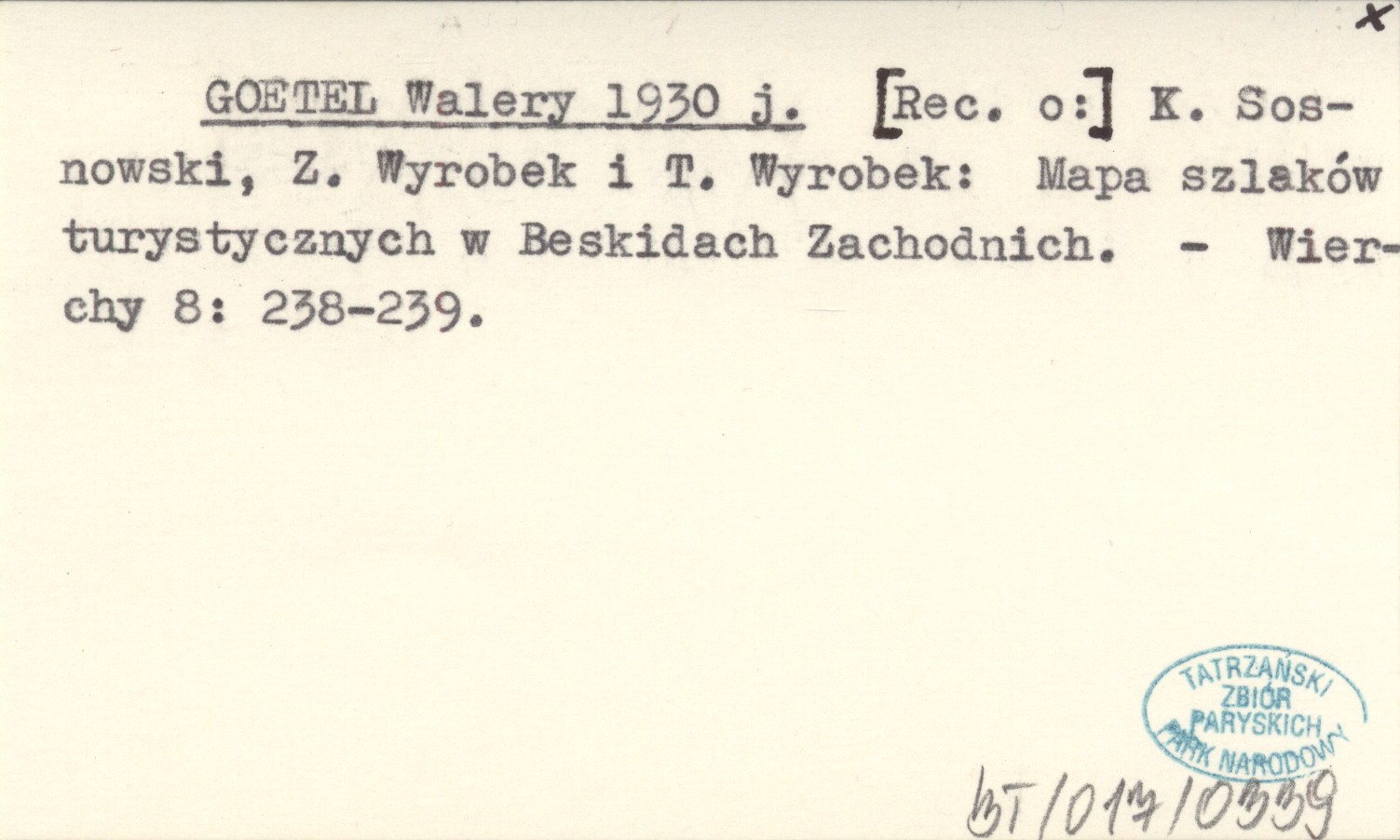 Wierchy, 8: 238-239. [Rec. o:]