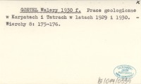 GOETEL Walery 1930 f Prace geologiczne w Karpatach i Tatrach w latach 1929 i 1930.