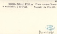 GOETEL Walery 1930 g Prace geograficzne w Karpatach i Tatrach.