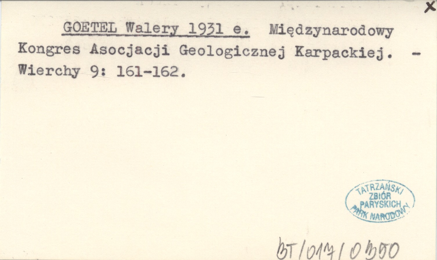 GOETEL Walery 1931 e Międzynarodowy Kongres Asocjacji Geologicznej Karpackiej.