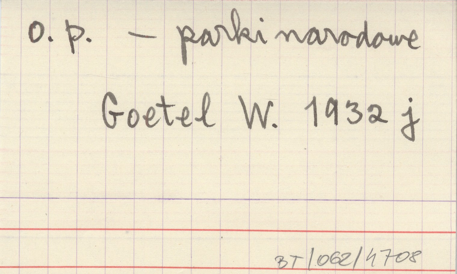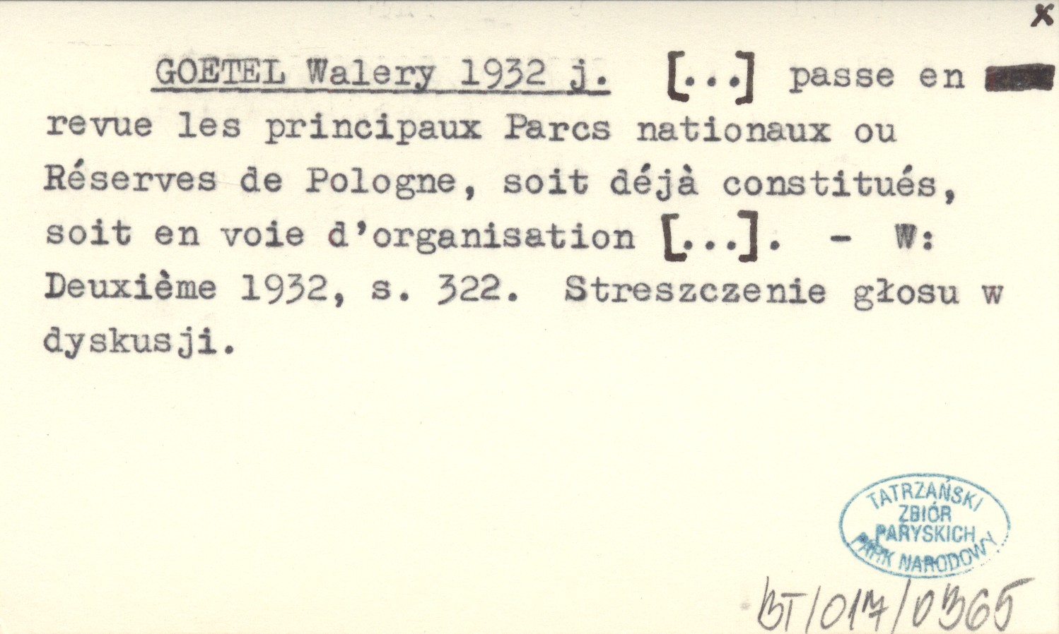 GOETEL Walery 1932 j [...] passe en revue les principaux Parcs nationaux ou Réserves de Pologne, soit déjá constitués, soit en voie d'organisation [...].