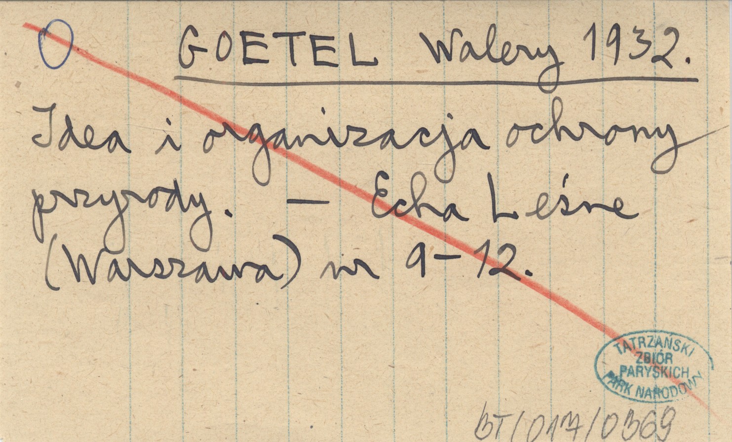 GOETEL Walery 1932 Idea i organizacja ochrony przyrody.