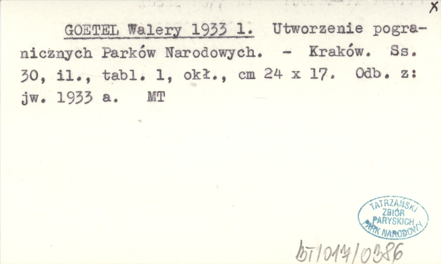 GOETEL Walery 1933 l Utworzenie pogranicznych Parków Narodowych.