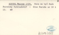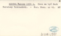 GOETEL Walery 1933 m Postępy w organizacji Parków Narodowych na pograniczu Polski i Czechosłowacji.