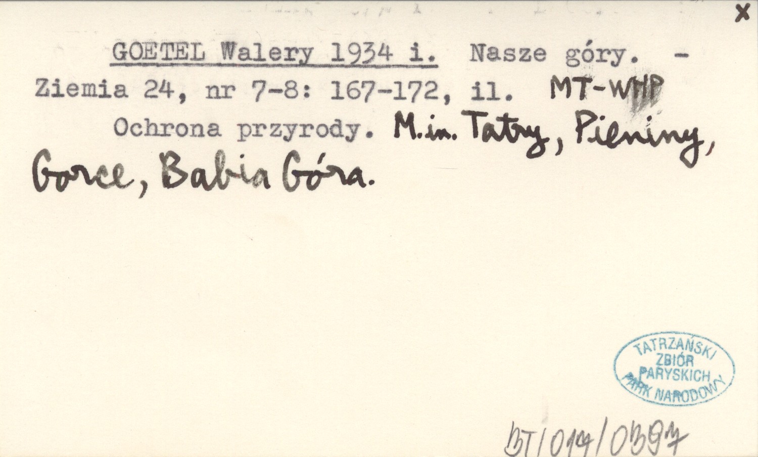 Ziemia, 24, nr 7-8: 167-172, il. Ochrona przyrody. M.in. Tatry, Pieniny, Gorce, Babia Góra.