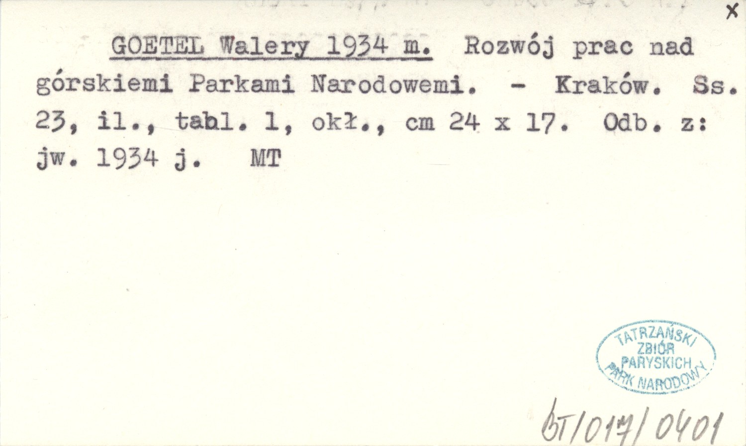 GOETEL Walery 1934 m Rozwój prac nad górskiemi Parkami Narodowemi.