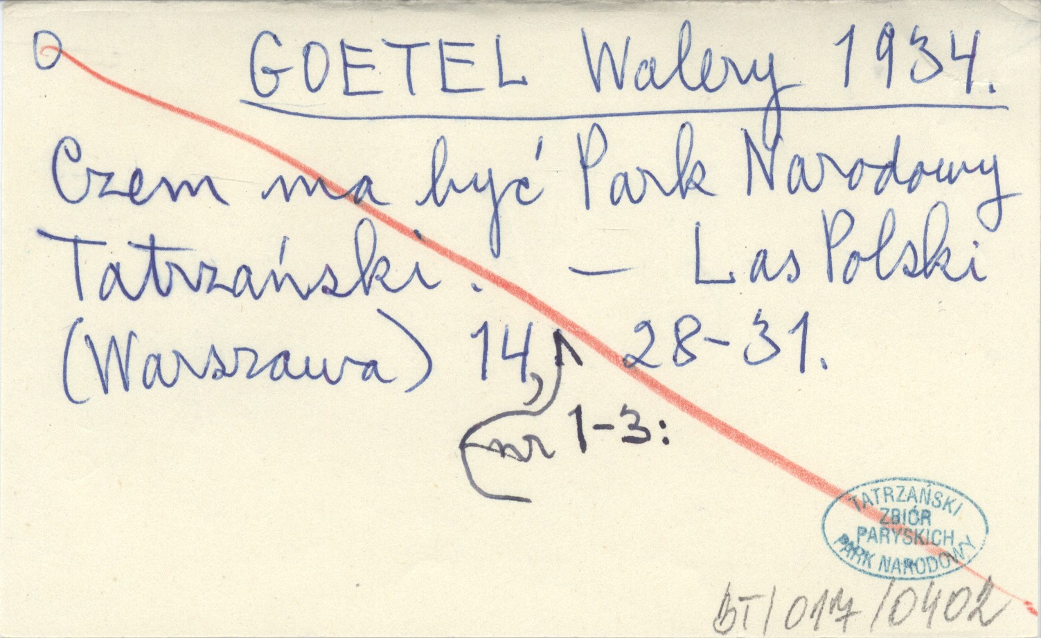 GOETEL Walery 1934 Czem ma być Park Narodowy Tatrzański.