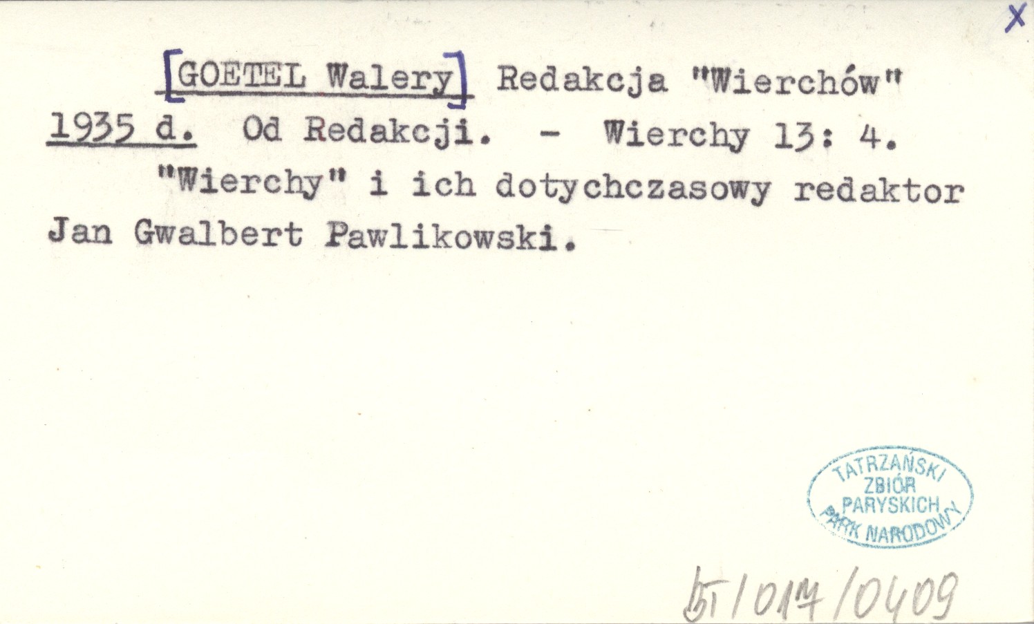 [GOETEL Walery] Redakcja "Wierchów" ; 1935 d Od Redakcji.