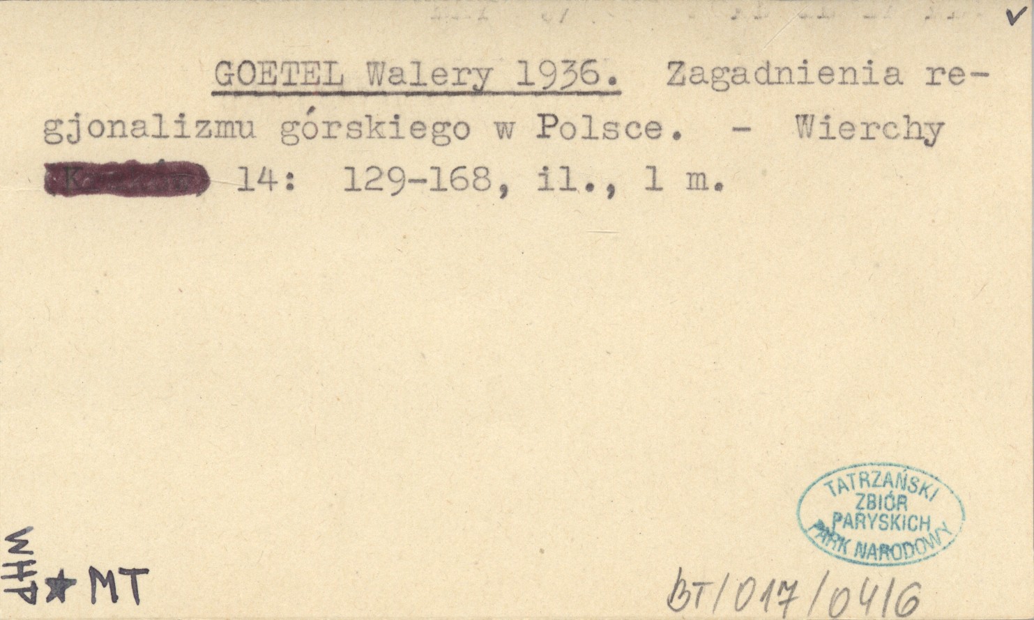 GOETEL Walery 1936 Zagadnienia regjonalizmu górskiego w Polsce.
