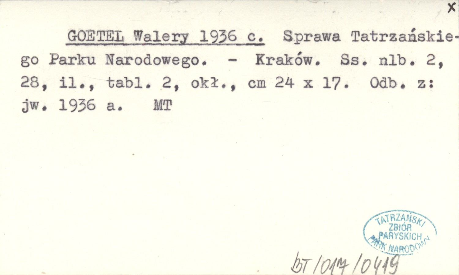 GOETEL Walery 1936 c Sprawa Tatrzańskiego Parku Narodowego.