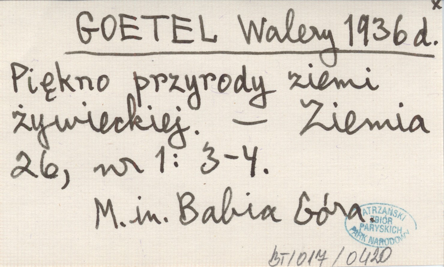 Ziemia, 26, nr 1: 3-4. M.in. Babia Góra.