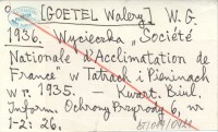W. G. [GOETEL Walery] 1936 Wycieczka "Société Nationale d'Acclimatation de France" w Tatrach i Pieninach w r. 1935.
