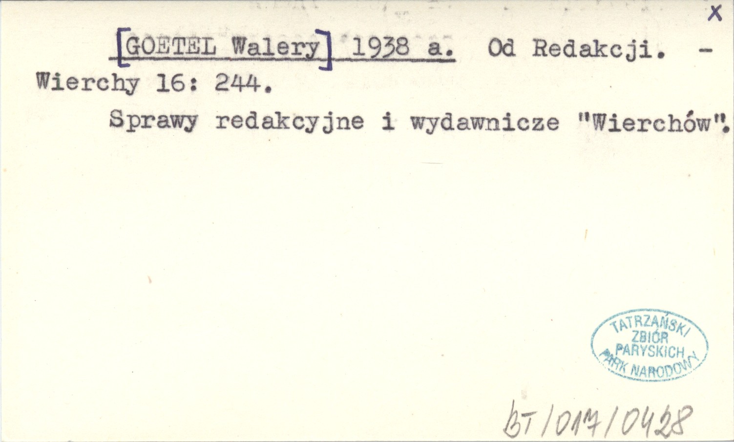 Wierchy, 16: 244. Sprawy redakcyjne i wydawnicze "Wierchów".