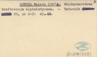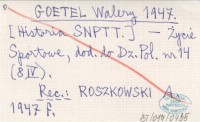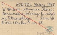 GOETEL Walery 1947 W 40-lecie istnienia Sekcji Narciarskiej Polskiego Towarzystwa Tatrzańskiego.