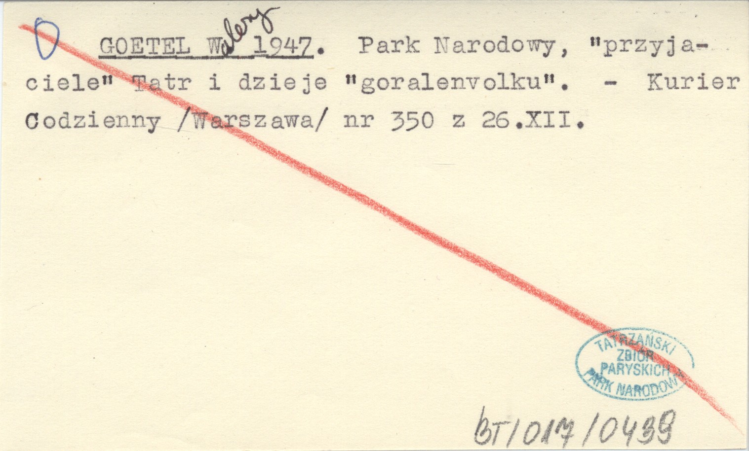 GOETEL Walery 1947 Park Narodowy, "przyjaciele" Tatr i dzieje "goralenvolku".