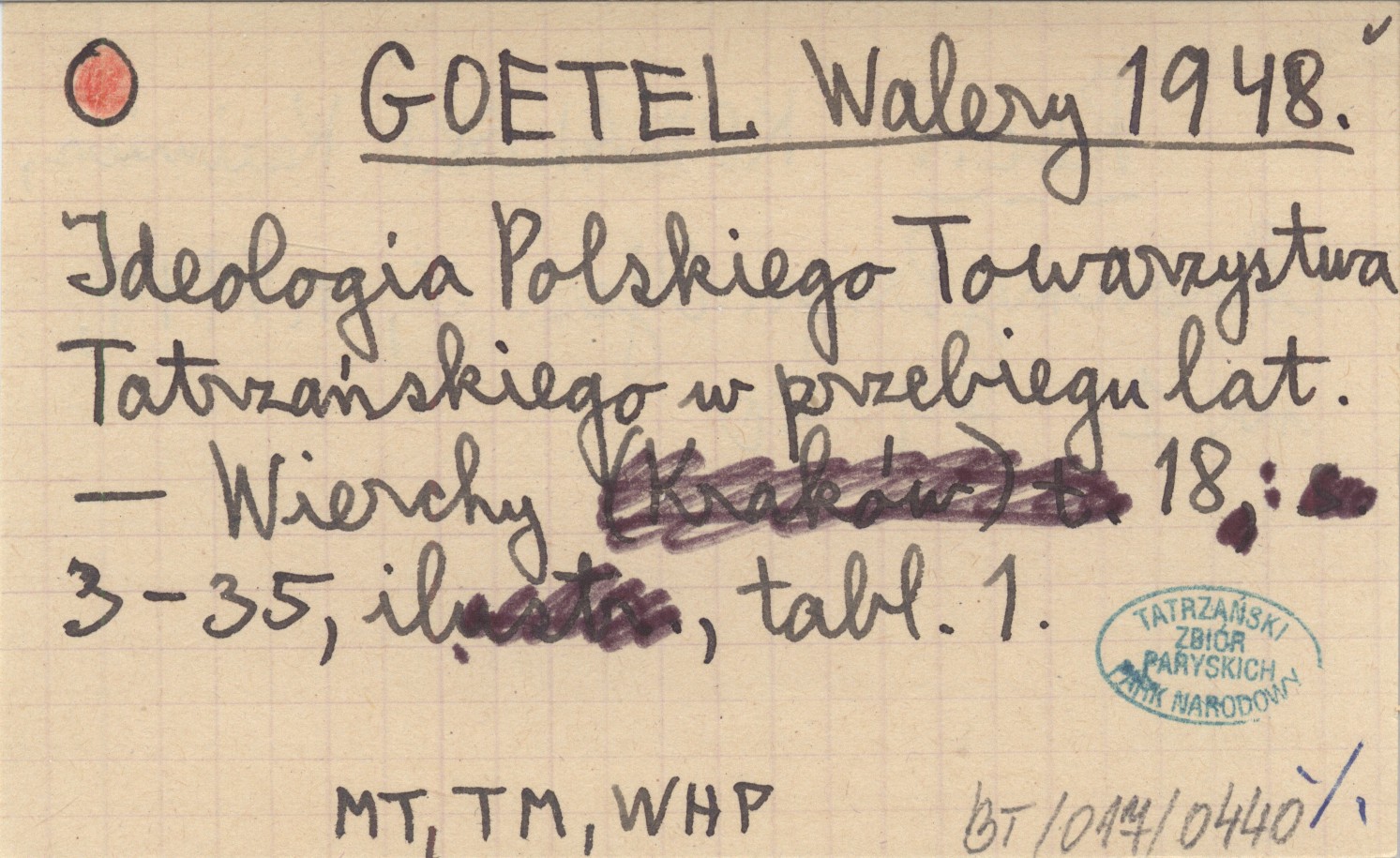 GOETEL Walery 1948 Ideologia Polskiego Towarzystwa Tatrzańskiego w przebiegu lat.