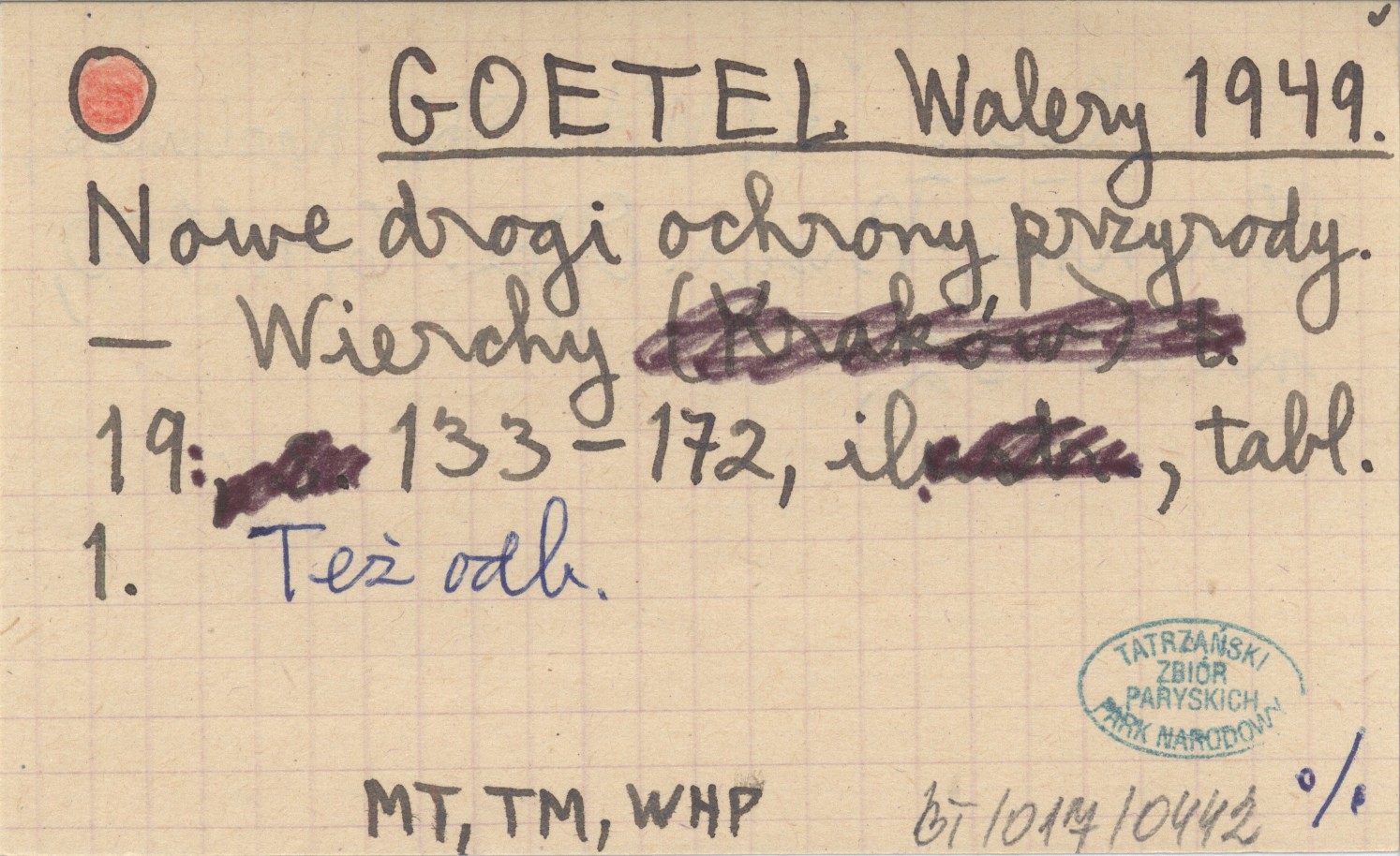 Wierchy, 19: 133-172, il., 1 k. tabl. Też odb. REC: KOWALSKI Kazimierz, Chrońmy Przyrodę Ojczystą 6, r. 1950, nr 3: 62.