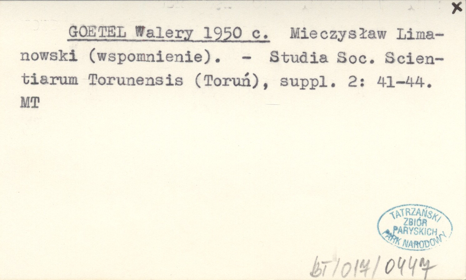 GOETEL Walery 1950 c Mieczysław Limanowski (wspomnienie).