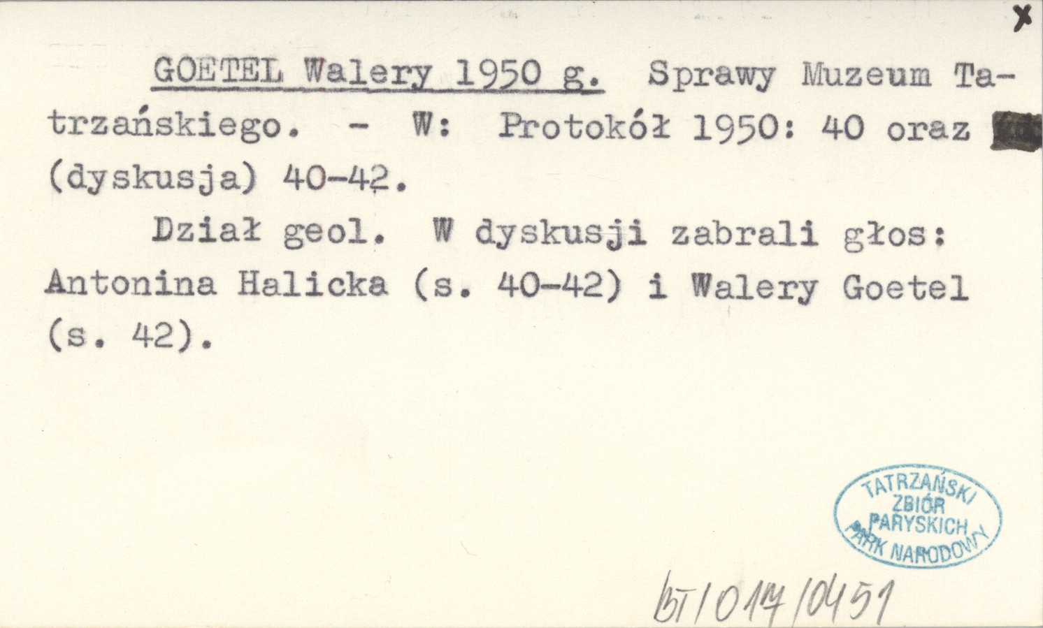 Protokół 1950. , S. 40-42. Dział geol. W dyskusji zabrali głos: Antonina Halicka (s. 40-42) i Walery Goetel (s. 42).