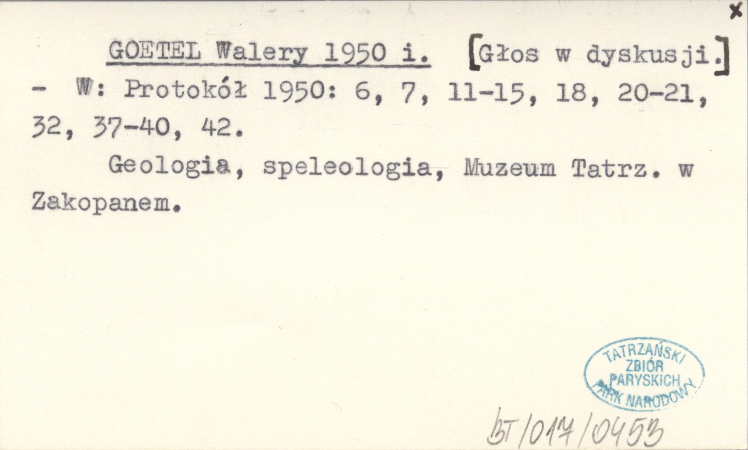 Protokół 1950. , S. 6-7, 11-15, 18, 20-21, 32, 37-40, 42. Geologia, speleologia, Muzeum Tatrz. w Zakopanem.