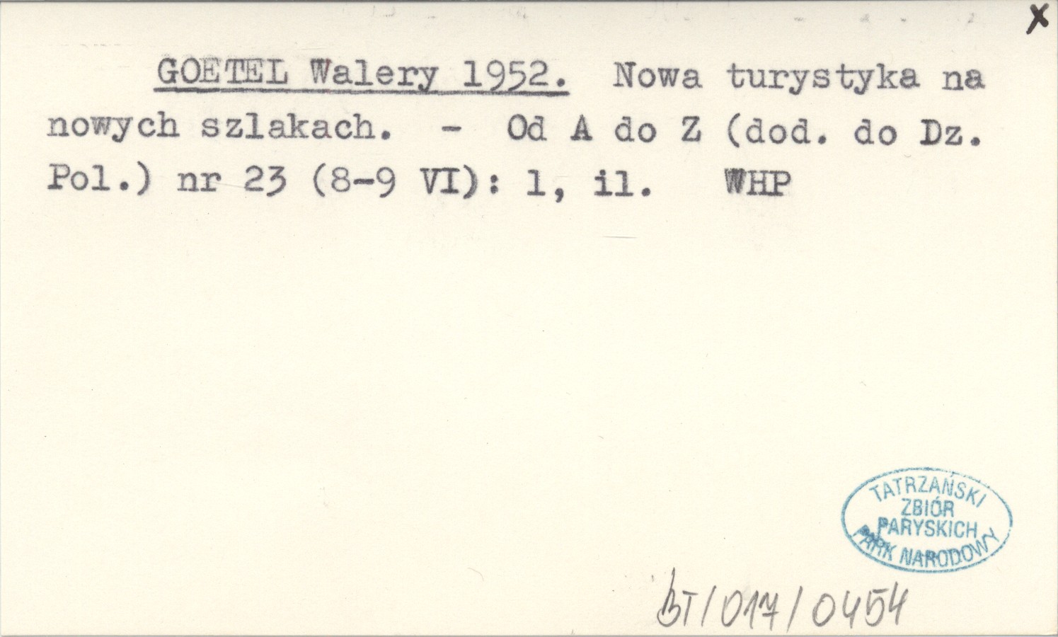 GOETEL Walery 1952 Nowa turystyka na nowych szlakach.