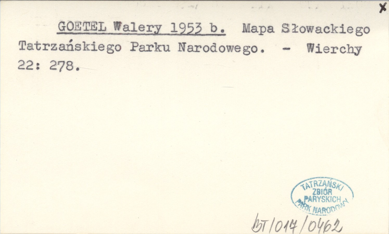 GOETEL Walery 1953 b Mapa Słowackiego Tatrzańskiego Parku Narodowego.