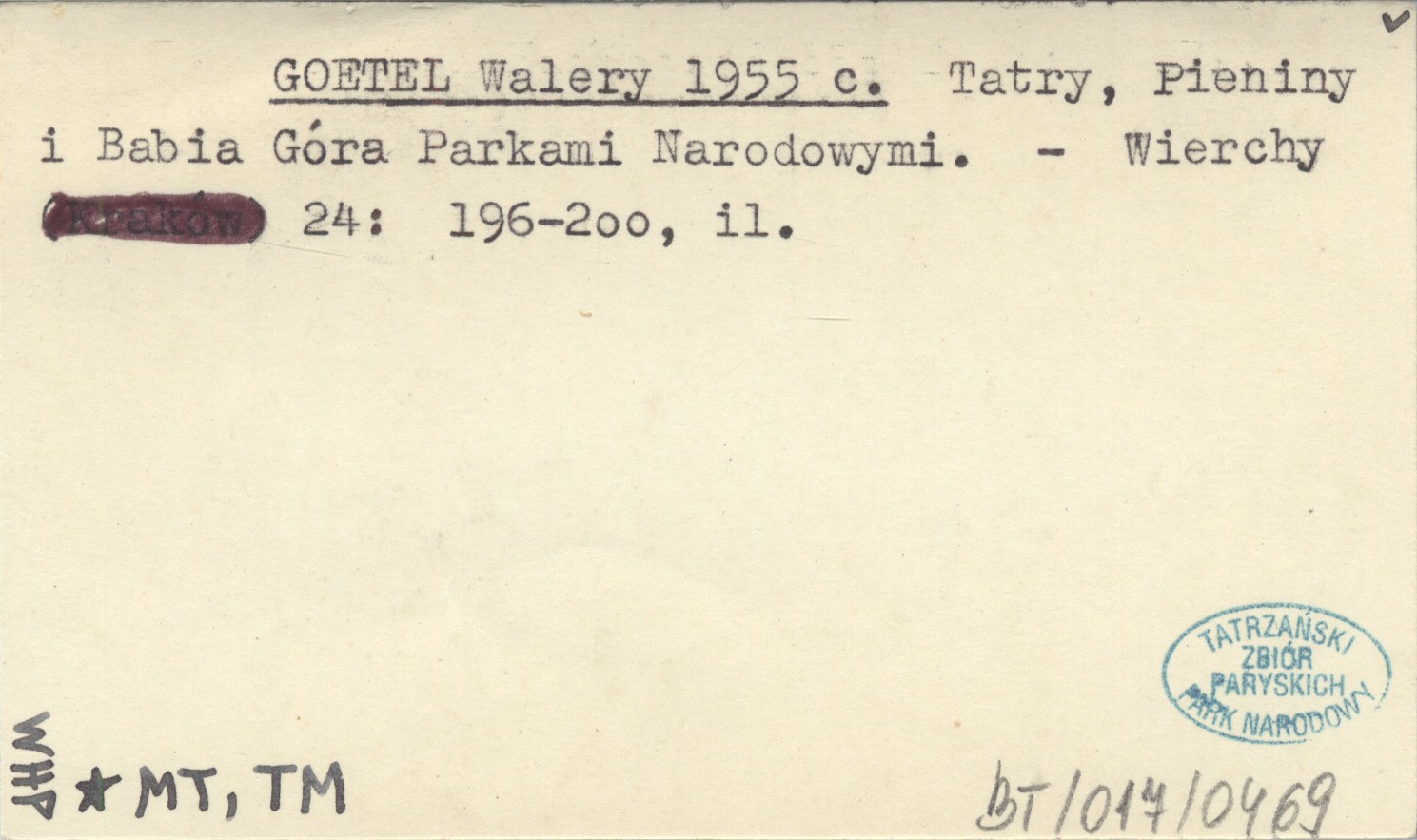 GOETEL Walery 1955 c Tatry, Pieniny i Babia Góra Parkami Narodowymi.