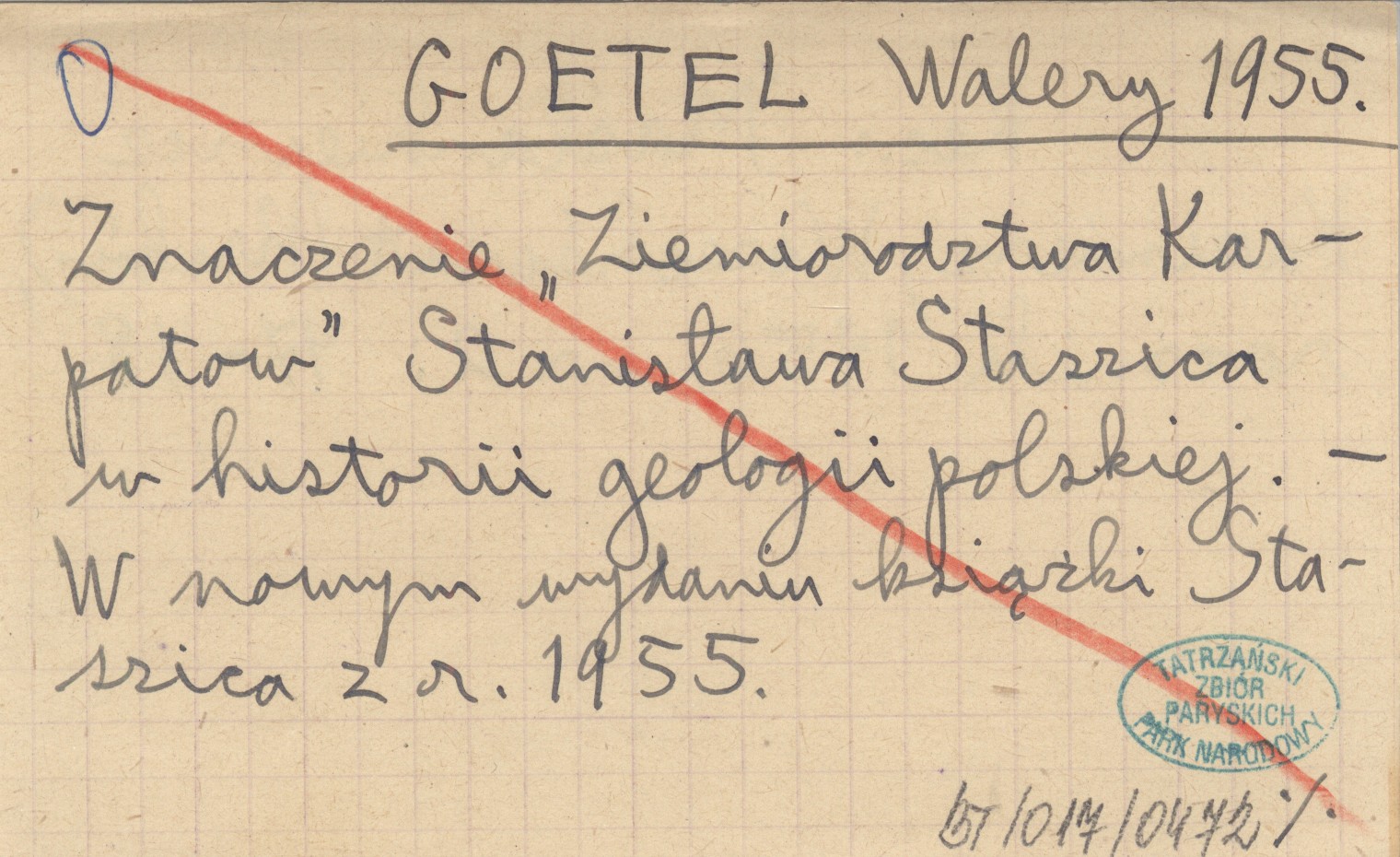 GOETEL Walery 1955 Znaczenie "Ziemiorodztwa Karpatow" Stanisława Staszica w historii geologii polskiej.