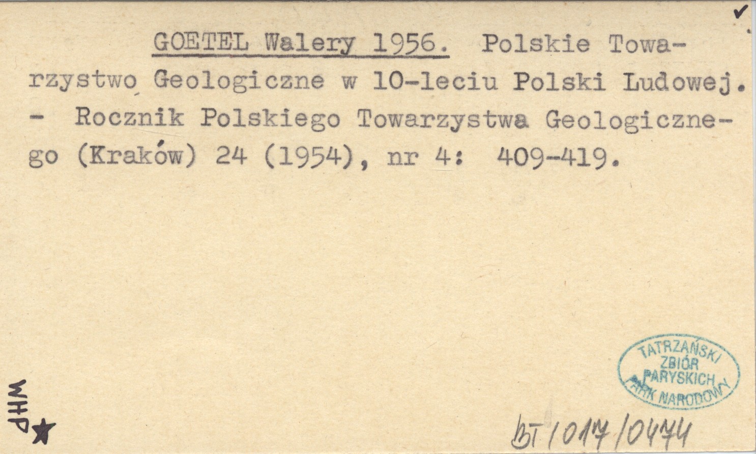 GOETEL Walery 1956 Polskie Towarzystwo Geologiczne w 10-leciu Polski Ludowej.