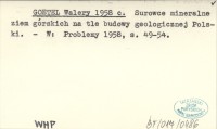 GOETEL Walery 1958 c Surowce mineralne ziem górskich na tle budowy geologicznej Polski.
