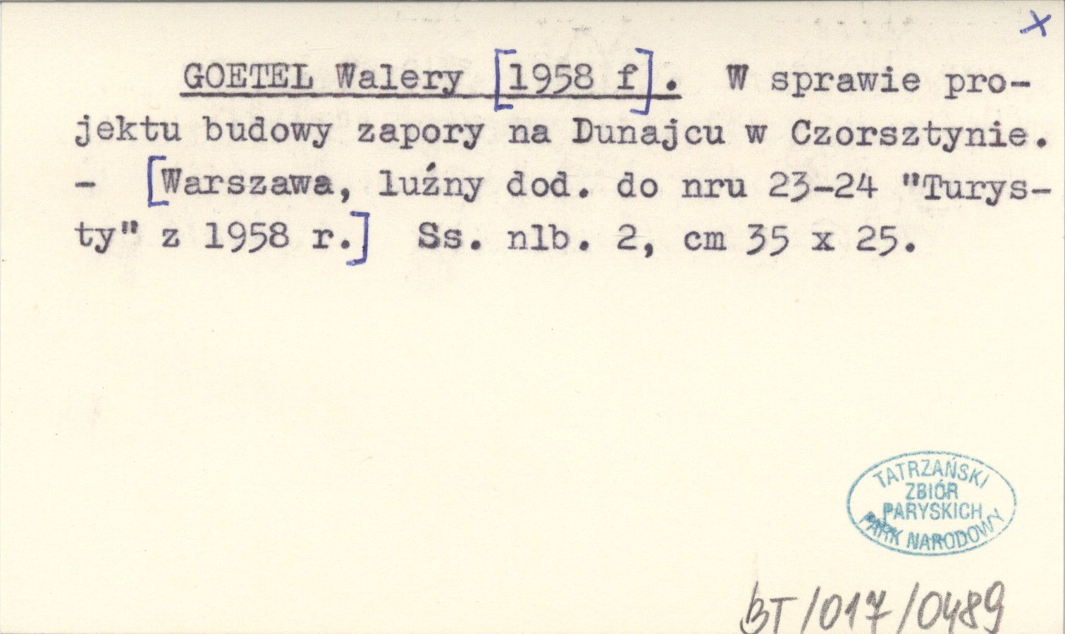 GOETEL Walery [1958 f] W sprawie projektu budowy zapory na Dunajcu w Czorsztynie.