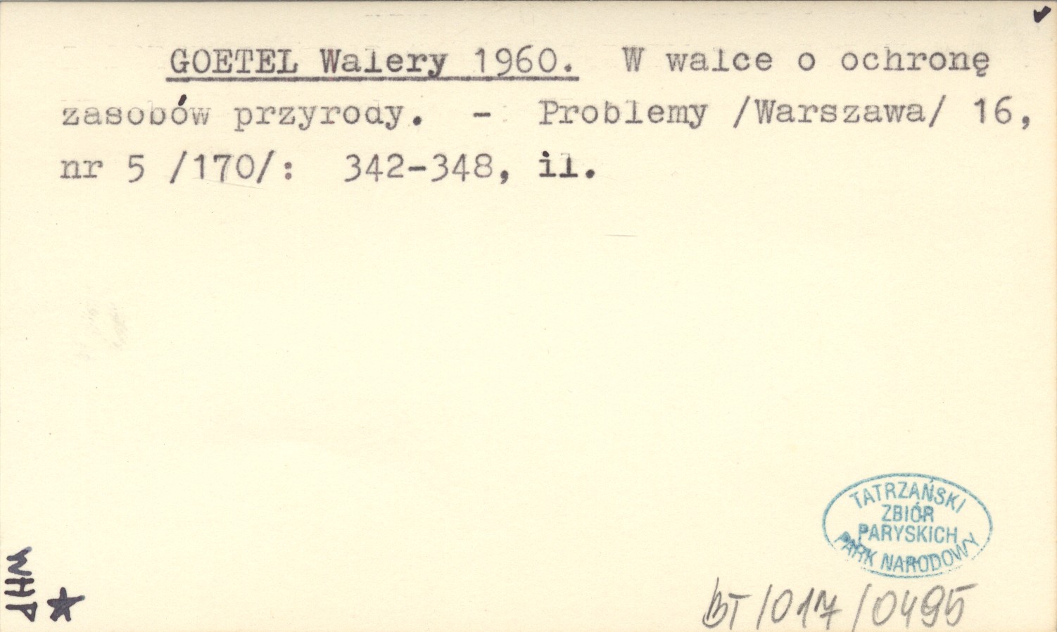 GOETEL Walery 1960 W walce o ochronę zasobów przyrody.